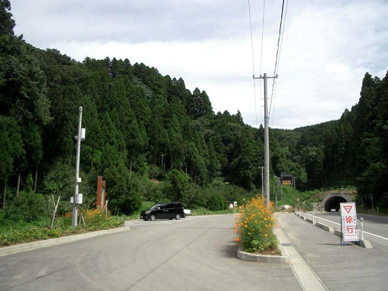 中永トンネルの出雲崎方面に雨量監視局を設置しました。道路脇のパーキング内に設置。隣には出雲崎周辺マップの案内板もあります